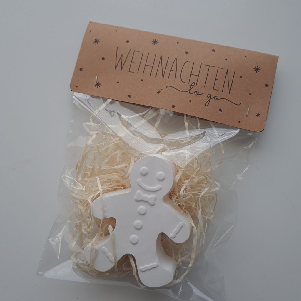 Süßer Lebkuchenmann zur Dekoration liebevoll verpackt.